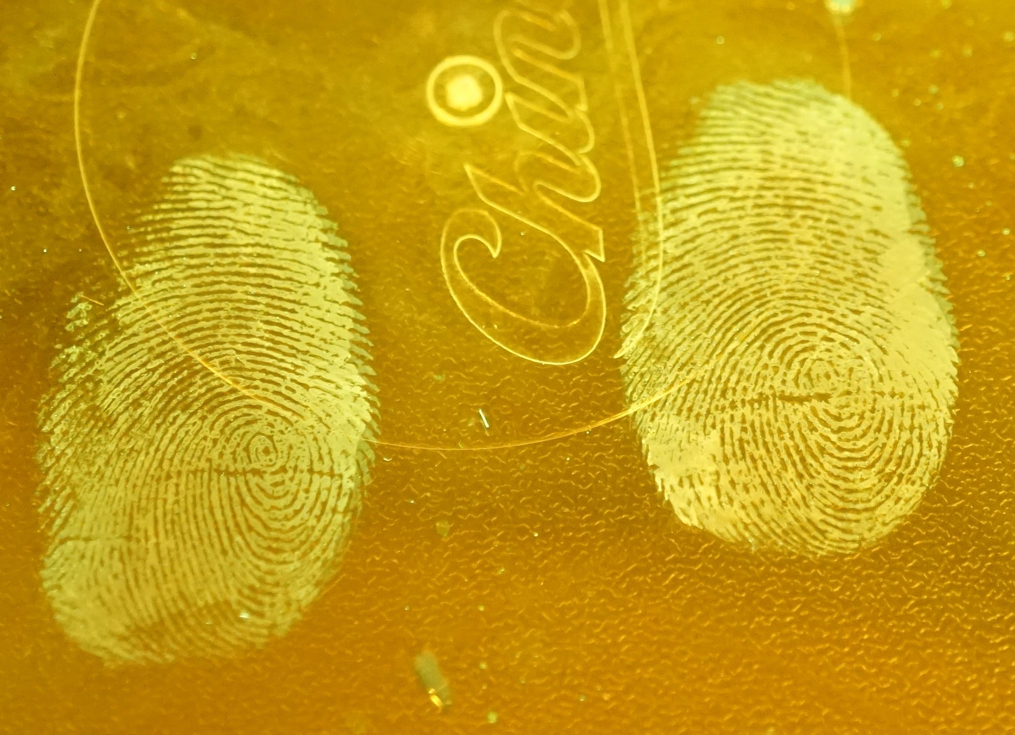 Numerous methods of staining are used to develop or enhance blood-contaminated latent prints. These methods depend on staining the protein components of blood to form a more visible impression, commonly a dark blue or black. Among these methods are Amido Black, LeucoCrystal Violet, Coomassie Blue, and Acid Fuchsin. Acid Yellow 7 stain is one of the newer and more effective fluorescent stains used to enhance bloody footwear and fingerprint impressions on non-porous surfaces. Staining reveals a yellowish-colored print which fluoresces under blue-green light (400-490 nm). When lifted with a white gelatin lifter, the impression will often reveal enhanced fluorescence.